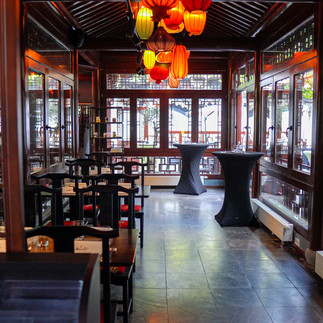 Unser beeindruckender Veranstaltungsort mit seiner einzigartigen Architektur im Shanghaier Teehaus-Stil bietet nicht nur elegante Innenbereiche, sondern auch weitläufige Außenbereiche. Diese sind um einen großen Teich herum angeordnet, der eine malerische Kulisse für dein Fest bietet und das Ambiente eines echten Sommernachtstraums kreiert.